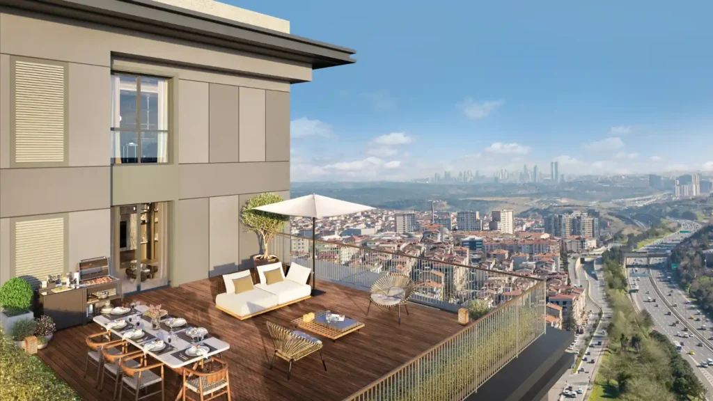 Teraslı daireler İstanbul’un büyüleyici siluetine açılıyor — karşıda Beşiktaş ve Levent’in eşsiz manzarası…